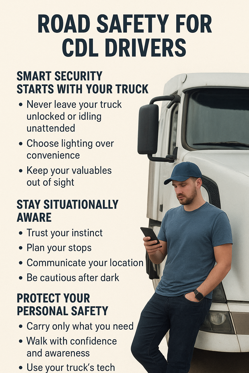 Life on the road looks different for CDL drivers—early mornings, late nights, long stretches alone, and constant movement from one city to the next. That’s why staying alert, prepared, and proactive about safety is essential. A few smart habits can protect both you and your rig.